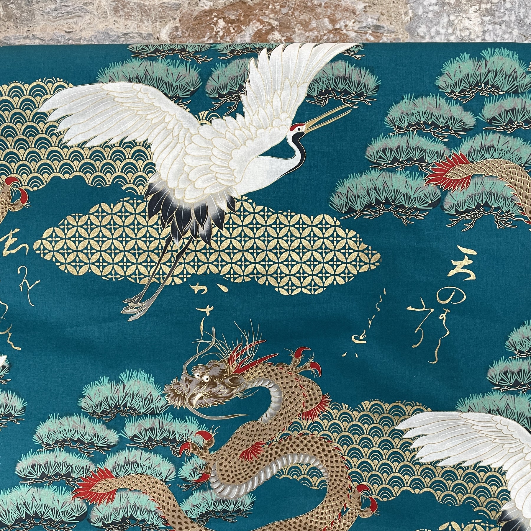 Oriental Heron Teal Japanese Cotton fabric