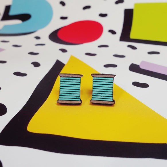 Wear your own haberdashery with these sewing thread stud earrings, showing off your love of sewing. Featuring engraved detail and hand painted with teal blue. Made from FSC sustainable wood, these sewing studs are fixed to hypoallergenic stainless steel earring posts - perfect for sensitive skin!