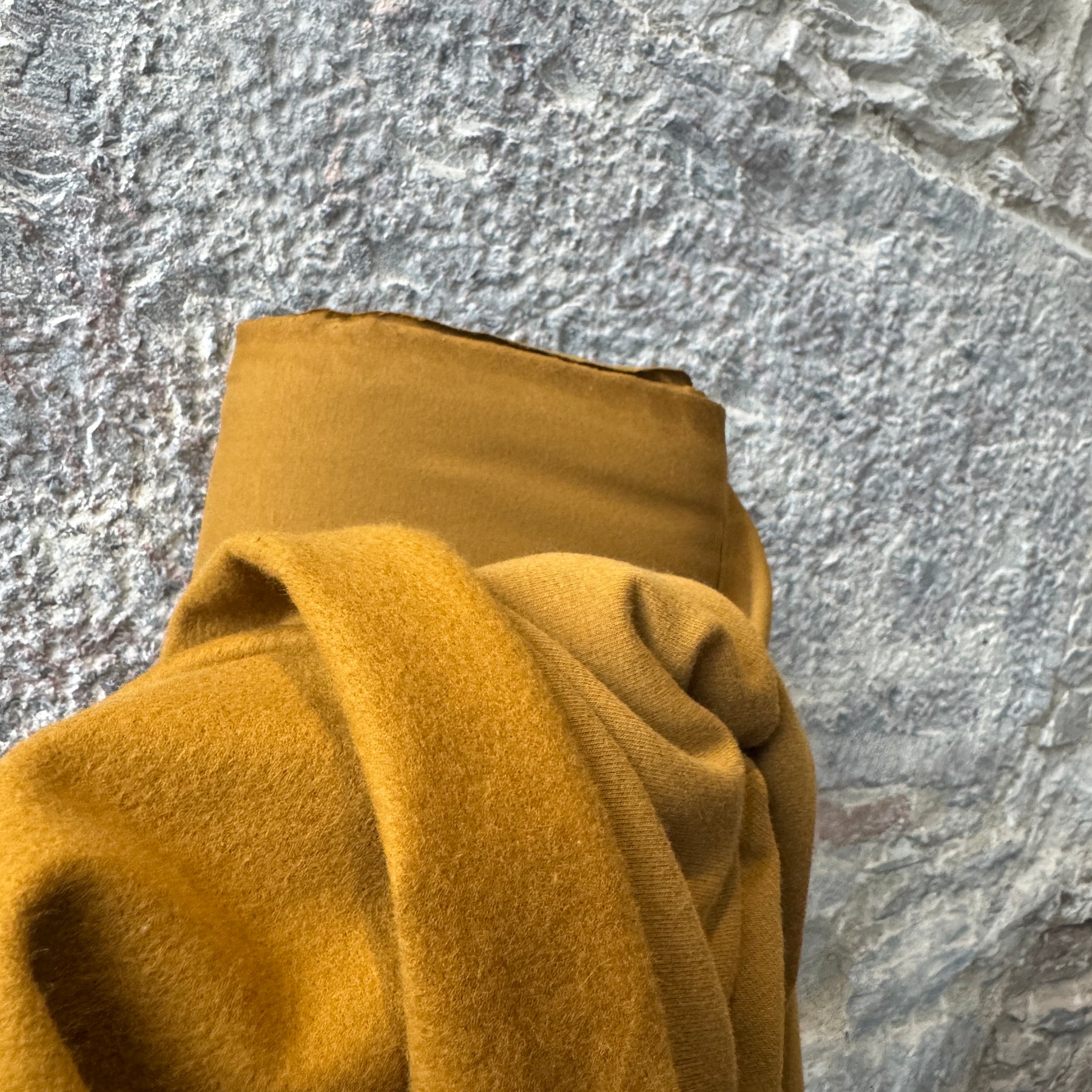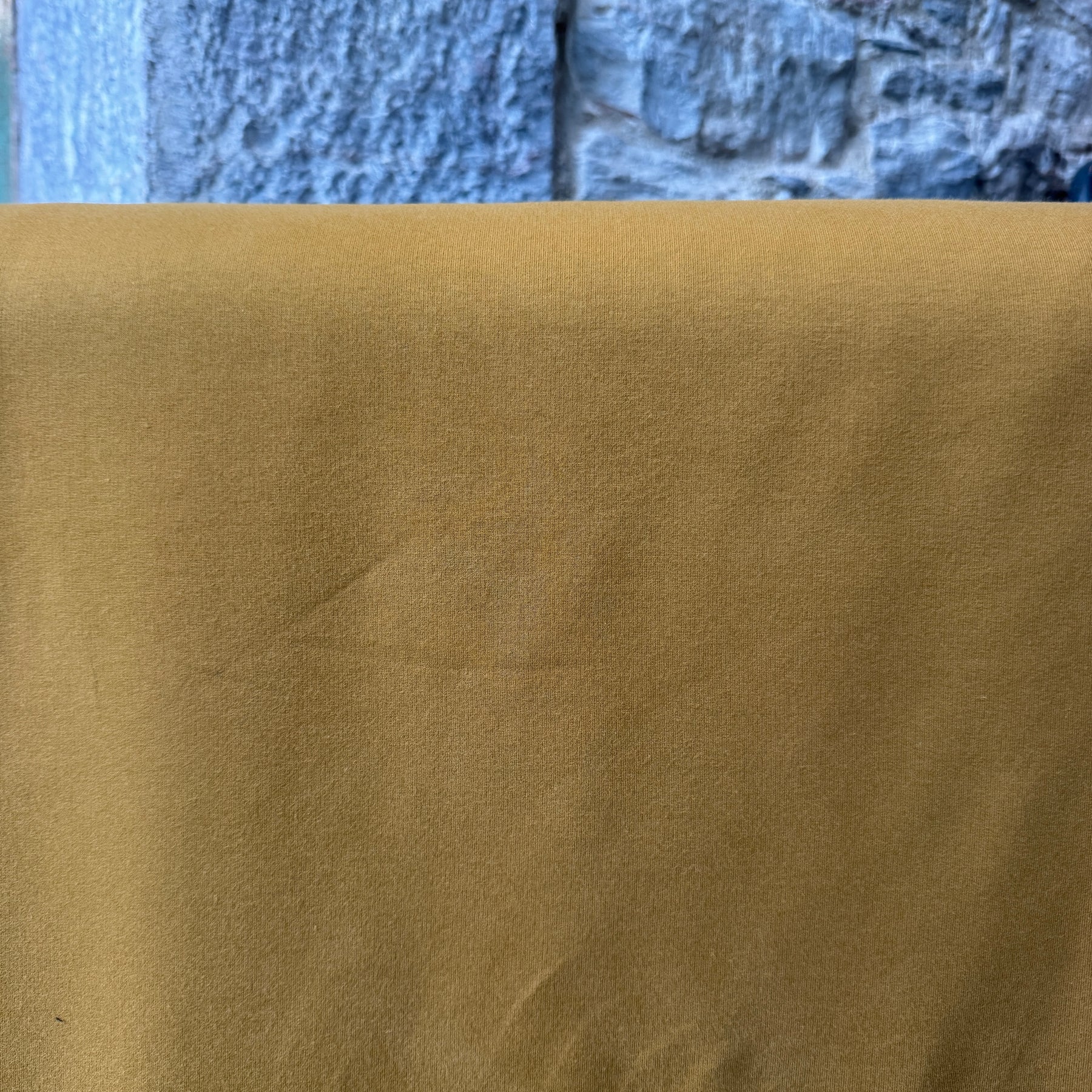 A knitted fabric with a super soft backing. A mid weight jersey not quite sweatshirt but heavier than a t-shirt weight. The super soft backing makes this have a gorgeous snuggly feel to it.